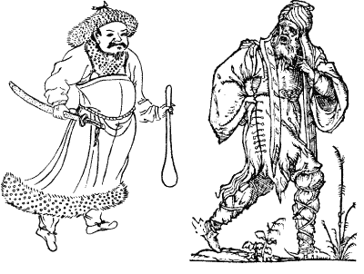 О внешности «монгольских татар» приходится судить по рисункам, но большинство из них сделаны или в наши дни, или в недавнем прошлом, то есть в XVIII–XX веках. На этих рисунках, выполненных отнюдь не очевидцами с натуры, а художниками по рассказам историков, изображены, как правило, тюрки, одетые в туркменские халаты, с кривыми саблями, на низкорослых лошадях, впервые описанных Пржевальским в XIX веке. Сборщики дани – баскаки, – судя по современным картинам, тоже выходцы из южных степей в своей своеобразной одежде.