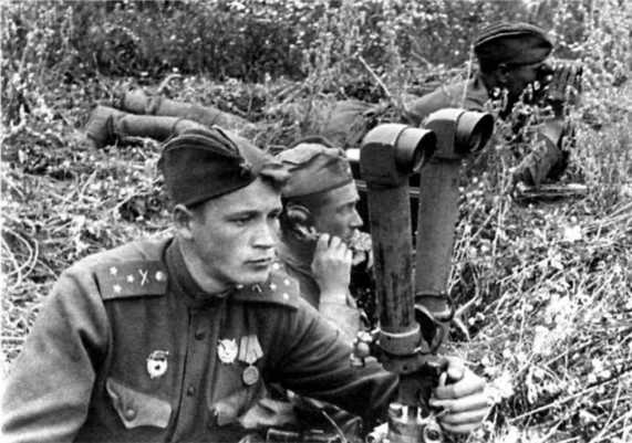 Группа разведки артиллерийского полка изучает передний край обороны противника.