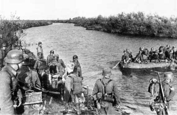Подразделения армейского корпуса «Раус» переправляются через Северский Донец.