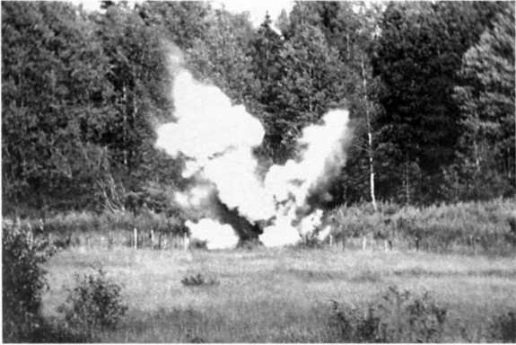 Прямое попадание снаряда в ДЗОТ. Снимок сделан через стереотрубу, видны характерные насечки. Трофейное фото.