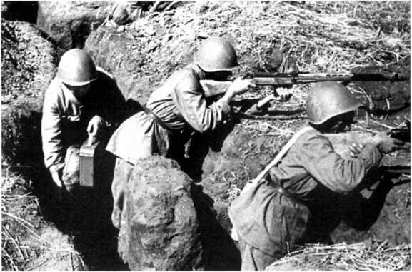 Пехота 78-й гв. стрелковой дивизии отражает атаку противника.