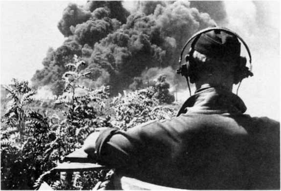 Командир немецкого танка наблюдает за результатами обстрела. Полоса наступления 3-го тк.