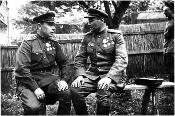 Командир 213-й стрелковой дивизии генерал-майор (в период Курской битвы полковник) И.Е. Буслаев (справа) и полковник А.А. Шашкевич. Фото 1944 г.