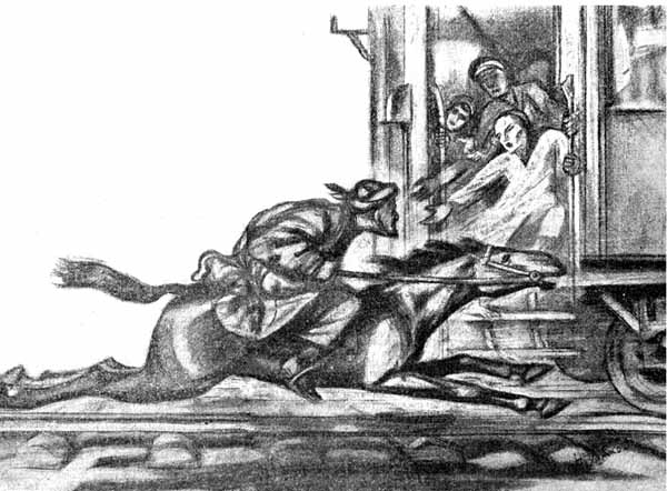 Опять садились в поезд, сходили с рельс, шли пешком, скакали на лошадях.