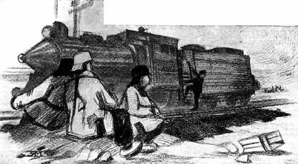 В 10 часов — вспоминает далее механик — он взглянул на часы. До разъезда 77-ой версты, цели перехода, оставалось уже не так много. Снизу, с площадки, поднимался густой желтоватый дым. Не то это была пыль от частого потряхивания угольной лопатой, не то китайский гражданин Ма-о по несознательности курил опий.