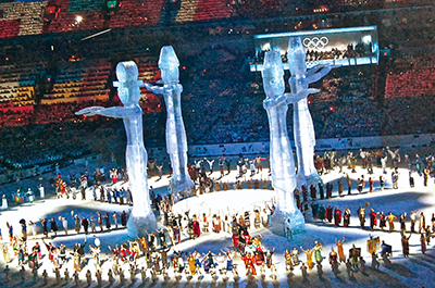 Канада 2010. Только три колонны из четырех поднялись во время церемонии открытия ванкуверской Олимпиады
