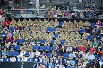 Лондон 2012. Военные заполняют пустые трибуны на соревнованиях по мужской гимнастике