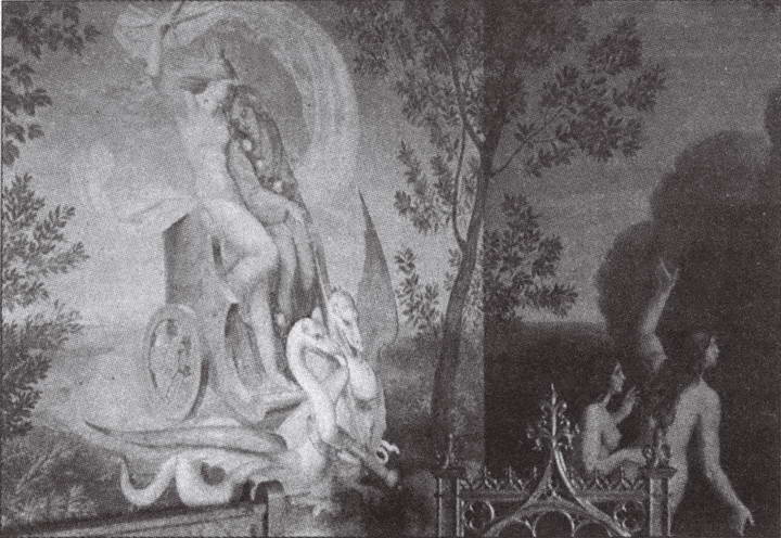 Находясь под воздействием поэтической атмосферы легенды о Лоэнгрине, мы поднимаемся на третий этаж и попадаем в следующий романтический Зал Героев и Рыцарей. Здесь стены украшены росписью на тему саги о Вилкине, части легенды о Дитрихе Бернском, которая была утеряна в Германии, но сохранилась в норвежской копии XIII столетия [42] .