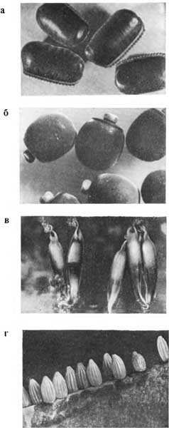Небольшая коллекция странных яиц: таракана (а), палочника (б), ската (в) и бабочки (г).