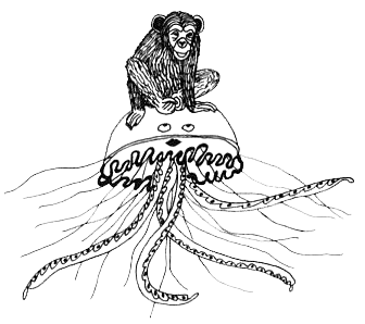 Испугалась обезьяна — кругом море, никуда с медузы не сбежишь. Но виду не подает: