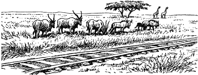 Целых шесть часов подряд поезд проходил по этому удивительному природному зоопарку. В чём же дело? Откуда такое изобилие животных? Оказывается, в этом месте Угандская железная дорога пересекает огромный резерват, или заповедник, в котором сохранилось много восточно-африканских зверей. Угандский заповедник существует и в настоящее время.