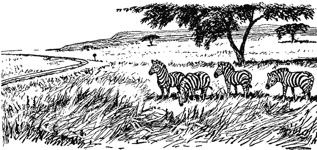 За холмом промелькнули качающиеся шеи жираф; вдали промчался, поднимая клубы пыли, табунок пёстрых зебр.