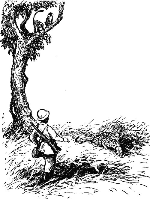 увидел два тёмных глаза, увидел и остолбенел от страха. Перед ним был леопард: он внимательно смотрел на человека, пригнувшись к земле. Троицкий настолько растерялся от неожиданности, что забыл о ружье, которое было за плечами, и о револьвере в кармане. Может быть, это было и к счастью, так как леопард при малейшем движении человека инстинктивно мог бы броситься на него, как это свойственно хищникам. Первым пришёл в себя зверь. Он пригнулся ещё ниже и… прыгнул в сторону. Только тогда В. В. Троицкий выхватил револьвер и выстрелил несколько раз в воздух, чтобы ещё больше испугать хищника.Встреча с леопардом.