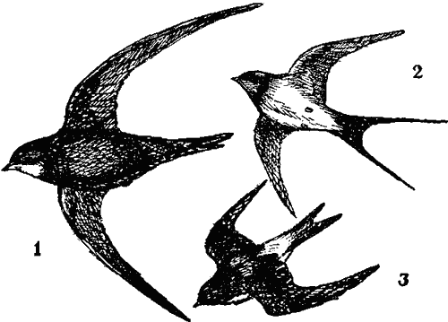 1 — стриж, 2 — ласточка деревенская, 3 — ласточка городская.