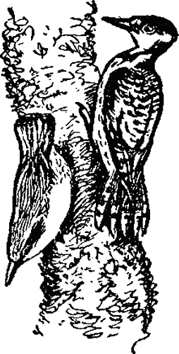 64. В любом направлении по стволу дерева может передвигаться поползень, а пищуха и дятел передвигаются по стволу только вверх головой. Это объясняется тем, что дятел и пищуха при движении по стволу опираются на упругий хвост; у поползня хвост короткий и в движении по дереву значения не имеет.