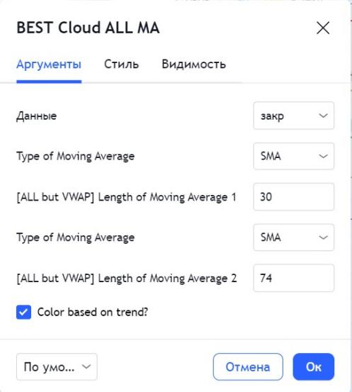 – Я использую индикатор Best Cloud MА, который имеет следующие настройки: