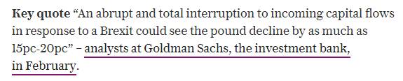 Даже такой известный и информированный игрок в финансовом мире, как инвестиционный банк Goldman Sachs, был уверен, что фунт обвалится.. Ниже приводится цитата из заявления главного аналитика этого банка, которое он сделал перед референдумом.