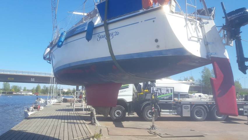 К вечеру погрузил на борт обе половинки чехла и разобранные на части стояночные кильблоки. На Родину идём, а там всё дорого, так что ничего не оставим на когда-то гостеприимном берегу страны, вступающей в НАТО. Погрузился и пошёл на стоянку Lepiko, на своё старое место.