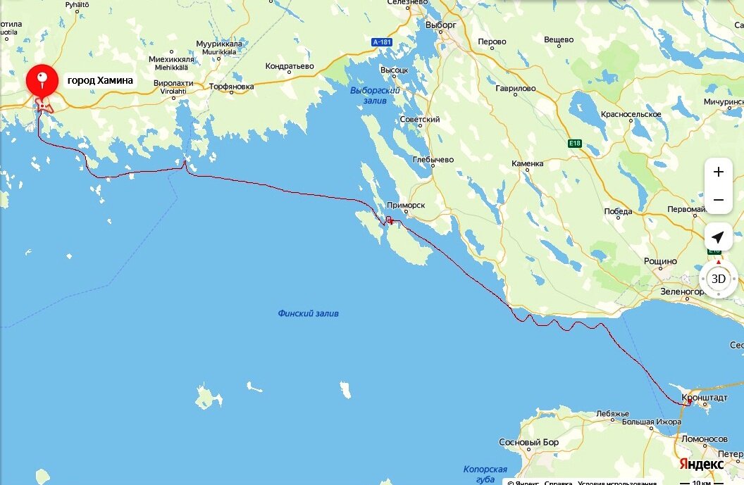 А я проснулся рано, быстро позавтракал и в 06.30 снялся с якоря. По выходу из пролива повернул на восток вдоль северного берега залива, огибая запретный для плавания район №105. Поднял парус в целях экономии бензина и сначала в лавировку, а потом бейдевиндом пошёл в Кронштадт. Патрульный катер сопровождал меня до траверза посёлка Пески. Далее береговая охрана милостиво меня отпустила, и я следовал один.