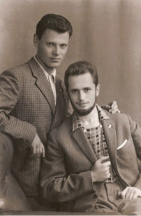 Толя и Олег. На пиджаках значки 40 лет ФМФ