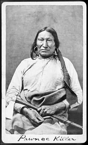 двух вышеприведенных столкновений, экспедиции Коннора похвастаться было нечем. Две другие колонны, руководимые Коулом и Уокером, не только не сумели нанести враждебным индейцам даже минимальных потерь, но и едва не погибли. Помимо постоянных нападений со стороны сиу и шайенов, они оказались не готовы к суровым условиям походной жизни. Хуже того, колонны Коула и Уокера заблудились.Вождь оглала-сиу. Убийца Пауни