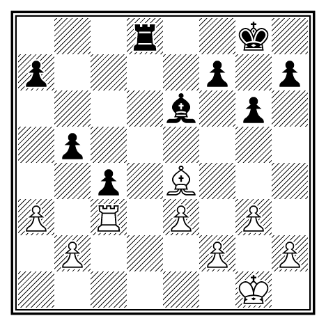 У белых два шанса выиграть, один, основанный на их проходной пешке, другой на слабости ладейной пешки черных (a). В настоящий момент черный король занимает в обоих отношениях выгодную позицию. Эго изменяется следующим образом: