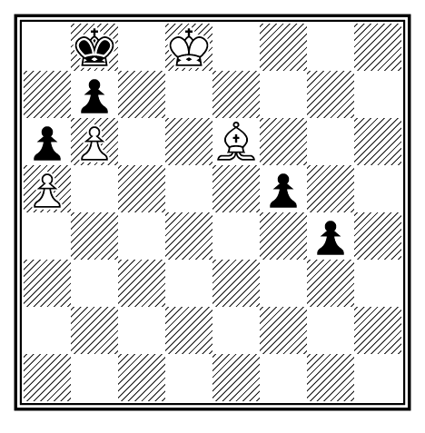 2. Крd3, c3 : b2; 3. Крc2, Сc3; 4. С : g5, a3; 5. Крb1. И теперь слон должен как можно скорее атаковать a3 или b2, например, 5. . . . Крd5; 6. Сe7 или 5. . . . Сe5; 6. Сd2 и Сb4 или c3.