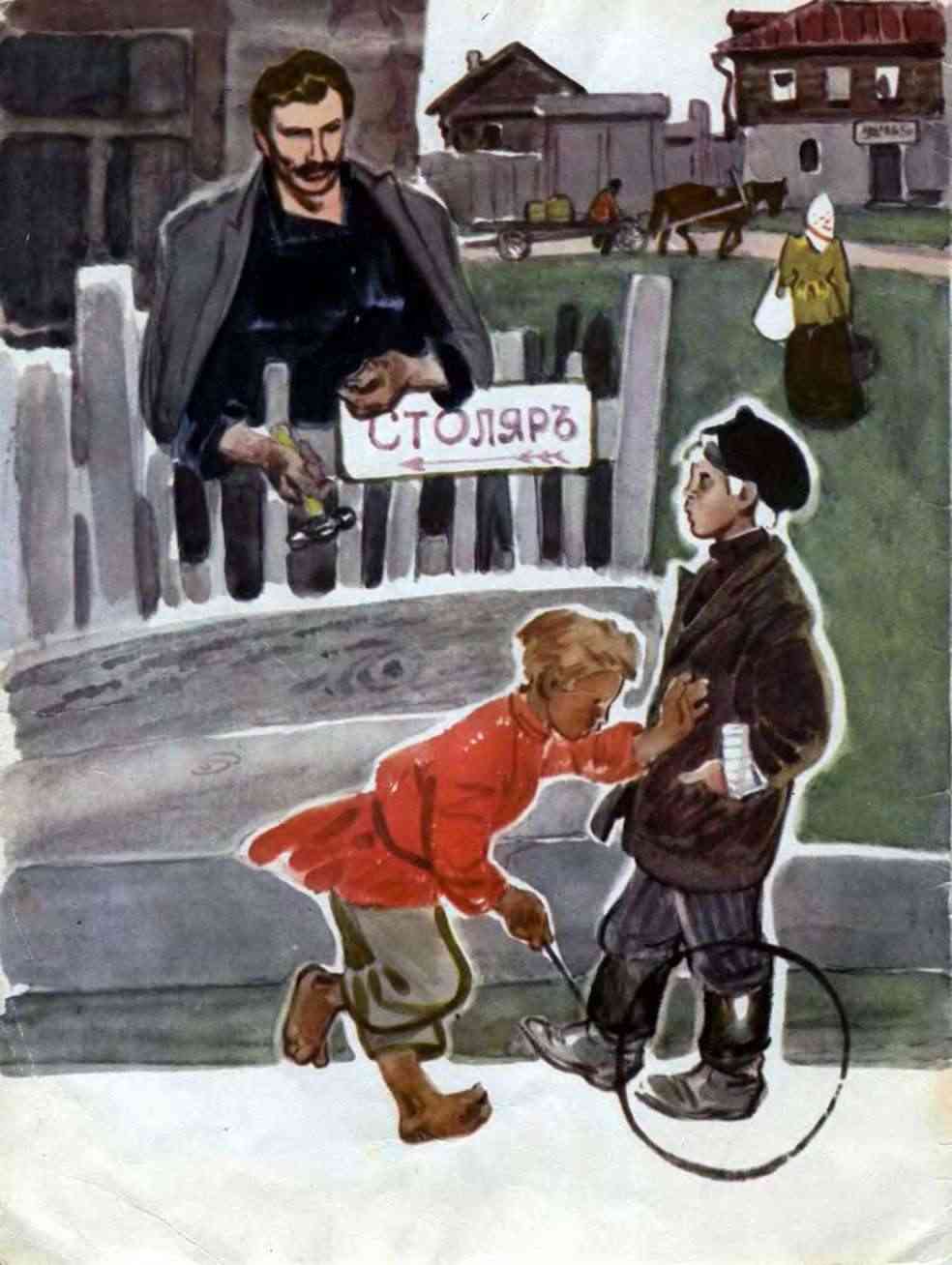 И чтобы все знали, что в Полоцке появился новый столяр, Бабушкин гладко выстругал дощечку и краской, большими буквами, написал на ней: „Столяр". И прибил дощечку на забор, возле калитки.
