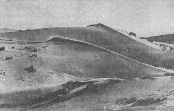 Ветры хлещут песчинками-брызгами. Птицы торопятся пересечь это желтое море, как торопятся они пересечь и море синее. И, бывает, так же гибнут в желтых волнах, как гибнут и в голубых. Только в волнах пустыни они не тонут, а засыхают…