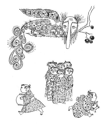 — Эй ты, Вакамацу! Тебе уже семь, а глупый совсем… В школу не ходишь… А ну, скажи, сколько будет: одна ворона да одна собака? Не знаешь? А какая дорога длиннее: из Киото в Осака или из Осака в Киото? Молчишь?.. Кыш-кыш, мальчик-глупыш!