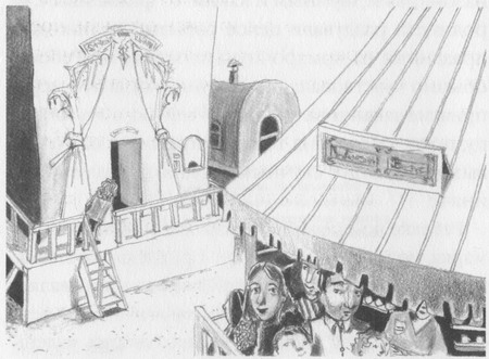Ребекке по-прежнему не слишком нравилась ярмарка, но на этот раз кое-что привлекло её внимание. Она то и дело останавливалась и оглядывалась: её взгляд словно магнитом притягивало к дальнему краю небольшой площади. Там находились маленькие будочки с лотереей, крошечная карусель, на которой детишки до пяти лет могли покружиться на потёртых лошадках, пивной ларёк, возле которого околачивались местные парни, и павильон, в котором нужно было бросать кольца на бутылки с шампанским и другие предметы, чтобы их выиграть. Но был тут ещё один странный шатёр, у которого была видна только обратная сторона — обшарпанная и неприглядная. И всё же Ребекку влекла туда какая-то непонятная сила.