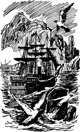 Итак, 3-го мая, в четвертом часу пополудни, старший боцман Гарри Доэс, первым разглядевший землю на горизонте, сошел вниз в сопровождении кое-кого из экипажа, чтобы узнать мои приказания. Мистер Джэкоб только что окончил свою вахту, и Питер Блэй, сменивший его, уже собирался посылать за мной, когда я сам поднялся на командирский мостик и навел подзорную трубу на едва виднеющиеся очертания берега... Так как мы находились в это время на 150-ом градусе восточной долготы, то я и предположил вначале, что вижу один из островов, давно известных всем судам, крейсирующим между Сан-Франциско и Японией. Но, приглядевшись внимательнее к быстро приближающимся берегам и специально к скалистой возвышенности на северо-западе, я понял, что мы находимся в виду того самого Кеннского острова, который был целью нашего путешествия.