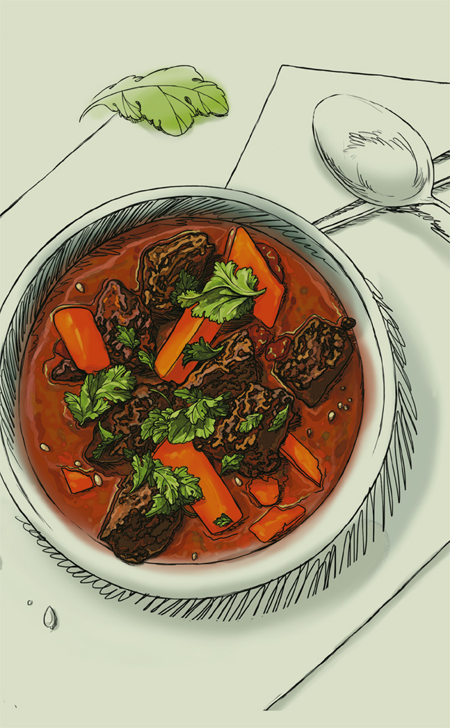 6. На медленном огне, не давая бульону закипать, томить хаш не менее пяти часов.