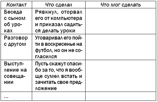 Для начала задайте себе вопрос: а что вы сделали для того, чтобы привлечь внимание и побудить уважение к вам этих людей? Нарисуйте таблицу и впишите сегодняшние ваши контакты с людьми, например, вот так:
