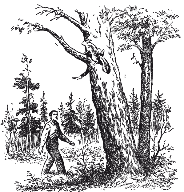 – Сегодня утром я с белкой в прятки играл, – рассказывал во время завтрака один из собравшихся за столом дома отдыха. – Вы знаете в нашем лесу круглую полянку с одинокой берёзой посредине? За этим деревом и пряталась от меня белка. Выйдя из чащи на полянку, я сразу заметил беличью мордочку с живыми глазками, уставившуюся на меня из-за ствола. Осторожно, не приближаясь, стал я обходить по краю полянки, чтобы взглянуть на зверька. Раза четыре обошёл я дерево – но плутовка отступала по стволу в обратную сторону, по-прежнему показывая только мордочку. Так и не удалось мне обойти кругом белки.