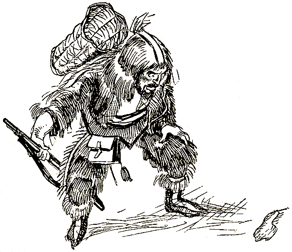 Робинзон терялся в догадках и не мог остановиться ни на одной. Не помня себя, он поспешил домой. Через каждые два-три шага он оглядывался назад, пугался каждого куста, каждого дерева, пень вдали принимал форму человека. Ужасные, пугающие образы проносились в его мозгу, все предметы принимали страшные формы в его взбудораженном воображении. Ни один заяц, ни одна лиса, спасаясь в безумном страхе от собак, не спешили так укрыться в своем логове, как он. Добравшись до дома, он стремительно проник в него, но потом никогда не мог вспомнить, как он это сделал? По приставной ли лестнице или через наружный ход?