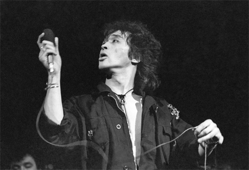 Лидер рок-группы КИНО Виктор Цой во время выступления на арт-рок параде во Дворце культуры Московского электролампового завода