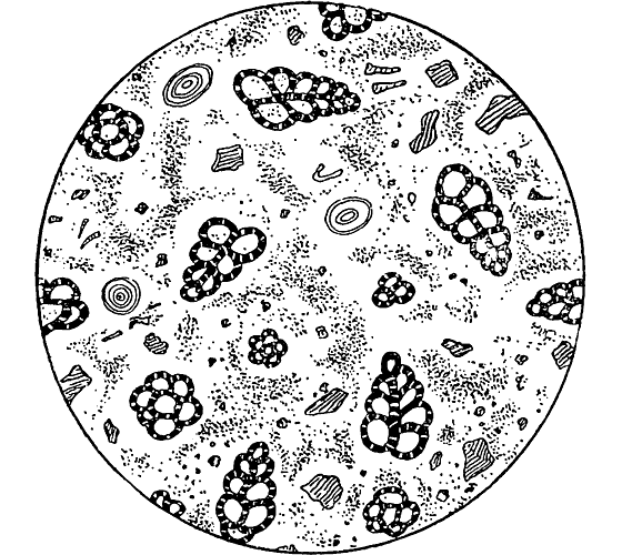 Большую роль в образовании отложений на дне моря играют бактерии. Некоторые бактерии способствуют осаждению из воды в грунт различных веществ. Другие образуют так называемые конкреции, когда на камешке или раковине оседает минеральное вещество из водного раствора. Так, например, железобактерии создают на обширных пространствах залежи железо-марганцевых конкреций. Вначале колония бактерий обрастает поверхность камешка. Затем рост идет вверх, преимущественно по краям колонии, чтобы вся колония бактерий омывалась свежей водой. Образуется как бы блюдечко из привлеченных бактериями железо-марганцевых соединений. Встречаются большие конкреции величиной с чайное блюдце, но обычно они меньшего размера. Особенно много конкреций на дне Карского и Белого морей.