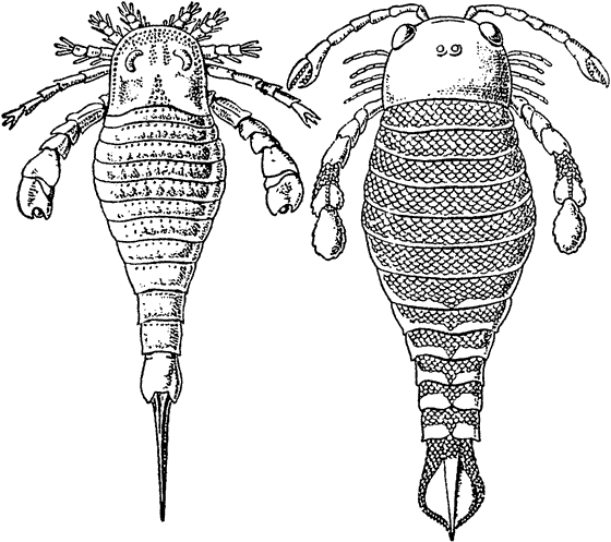 Особенно надо отметить появление кистеперых рыб. Веслоподобные боковые плавники помогали им не только плавать, но и «бродить» по дну или среди подводных скал. Плавники кистеперых рыб и по внутреннему строению отличаются от боковых плавников других рыб. Они имеют такой внутренний скелет, что позволяют нам установить путь развития пятипалой конечности наземных позвоночных животных. Кистеперые рыбы
