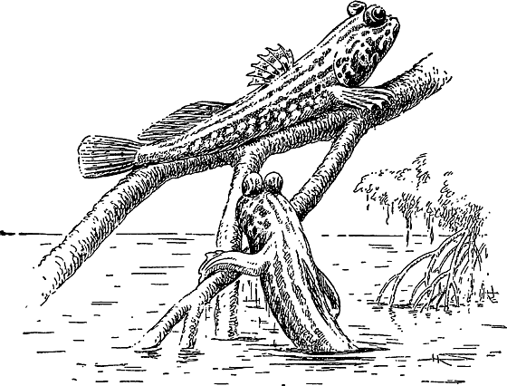 На берег моря вылезают рыбы-прыгуны. Они долго могут ползать по корням деревьев, растущих по берегам тропических морей. Эти рыбы охотятся в воздухе за насекомыми. Некоторые прыгуны настолько приспособились к жизни во влажной атмосфере мангровых зарослей, что если их держать только в воде и не давать возможности вылезать на воздух, они погибают через 30–60 минут. Но долго жить на берегу они тоже не могут.