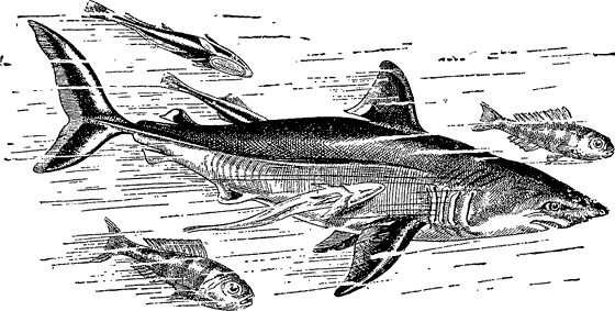 С акулами тесно связана и жизнь своеобразных рыбок — рыбы-лоцмана и прилипалы. Обычно акул сопровождает рыба-лоцман. На теле акул часто можно видеть небольших, крепко приставших к ней рыб. В головной части тела у прилипалы имеется большая присоска. Она образовалась из видоизмененного первого спинного плавника. Присоской прилипала прикрепляется к телу акулы. Так они и путешествуют вместе. После удачной охоты прилипалы и лоцманы набрасываются на остатки акульей трапезы и начисто все подъедают.