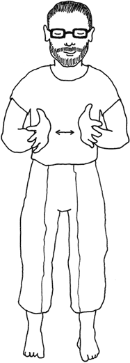 Представьте, что у вас в руках аккордеон. Затем начните играть на этом воображаемом аккордеоне, очень медленно, как романтически настроенный аккордеонист. Сближайте ладони очень медленно, пока они не окажутся близко-близко (но не касайтесь ладонями, ведь между ними аккордеон, вы не забыли?), а затем начинайте снова медленно их разводить. Продолжайте сближать и разводить ладони. Остальное тело, особенно руки и плечи, должно быть расслаблено так, как только это возможно.