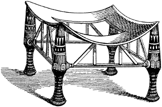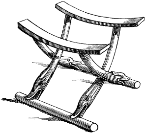Существовало много других видов мебели для сидения, кроме тех роскошных, образцы которых здесь описаны. Были, например, табуреты без спинок и львиных лап, изготовленные из слабо скрепленных пальмовых ветвей; сделанные с большой заботой и мастерством табуреты из черного дерева; складные табуреты наподобие наших таких же [52] ; низкие, с толстыми подушками сиденья для старых людей, похожие на нашу софу и т. д. [53]