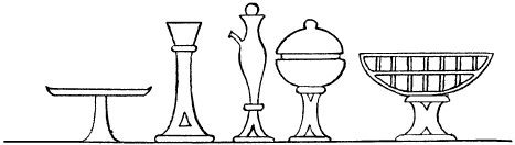 Цвет несомненно указывает, что это камень: L. D., ii. 19, 20. Что такое маленькие выемки вверху и внизу на этих подставках, я не могу сказать. Иногда бывает (например, L. D., ii. 57 b), что ножка и корзина прикреплены друг к другу.