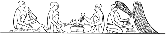 В доме были также рабыни, и красивых сириек часто выбирали прислуживать господину. Во всяком случае, при царском дворе были крепостные слуги, находившиеся под началом у «главного начальника», а среди старших по должности слуг царского хозяйства, несомненно, было много рабов, приведенных из других стран. Но эти царские «начальники продовольствия», «начальники жилища», зависимые крестьяне, «носители прохладных напитков», «писцы у подножки», «изготовители сластей», как они назывались, занимали высокое положение и пользовались уважением, помимо прочих причин, еще и потому, что египтяне во все времена очень ценили умение хорошо готовить.