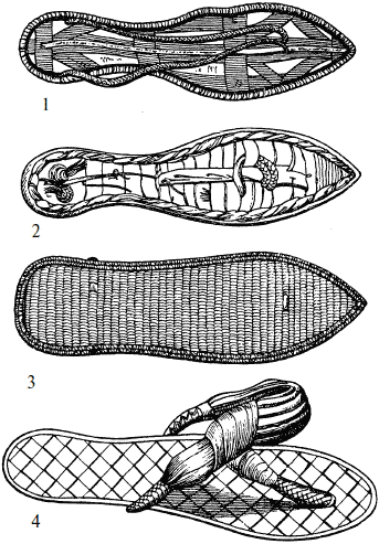1, 2 – верхняя и нижняя сторона сандалии (замок Алнвик). 3 – то же самое. 4 – Берлин (согласно W., ii. 336, 337)