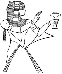 В эпохи Древнего и Нового царства женщины, похоже, никогда не носили сандалий, а знатные мужчины, вероятно, надевали сандалии лишь тогда, когда находились вне дома, и при необходимости, но даже и в этих случаях обычно отдавали их в руки носителю сандалий , который шел сзади [137] . В эпоху Нового царства сандалии носили чаще, но все же они были для египтян чем-то не вполне своим, и обычай запрещал человеку носить их перед теми, кто стоял выше его в обществе [138] .