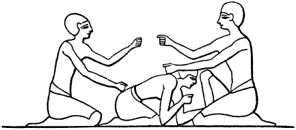 Неизвестная нам игра времен Среднего царства. Возможно, человек, стоящий на коленях, должен был угадать, кто его ударил (согласно W., ii. 61 = Ros. M. C., 102)