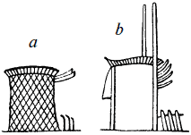 Древнейший облик египетского храма известен нам по надписям времен Древнего царства; a – храм бога Сета [218] ; в – храм другого бога, имя которого не названо [219] . Оба, похоже, представляют собой деревянные решетчатые хижины. Над дверью мы видим варварское украшение – изогнутые куски дерева; один храм, как в более поздние времена, украшен флагштоками. Вход, очевидно, загорожен частоколом. Здания, подобные этим, широко распространены у народов, находящихся на низком уровне цивилизации. Их планировка могла быть унаследована с доисторических времен.