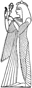 прошлого, и даже наши священнослужители имеют склонность считать первые века истории церкви временем, когда в ней царила чистая вера, и носят тот же наряд, что носили их предки.Храмовая певица Таха, сестра Пеннута, чиновника из нубийского ведомства. В руке она несет систр – музыкальный инструмент, на котором играли в храмах (ХХ династия. L. D., 231 a)